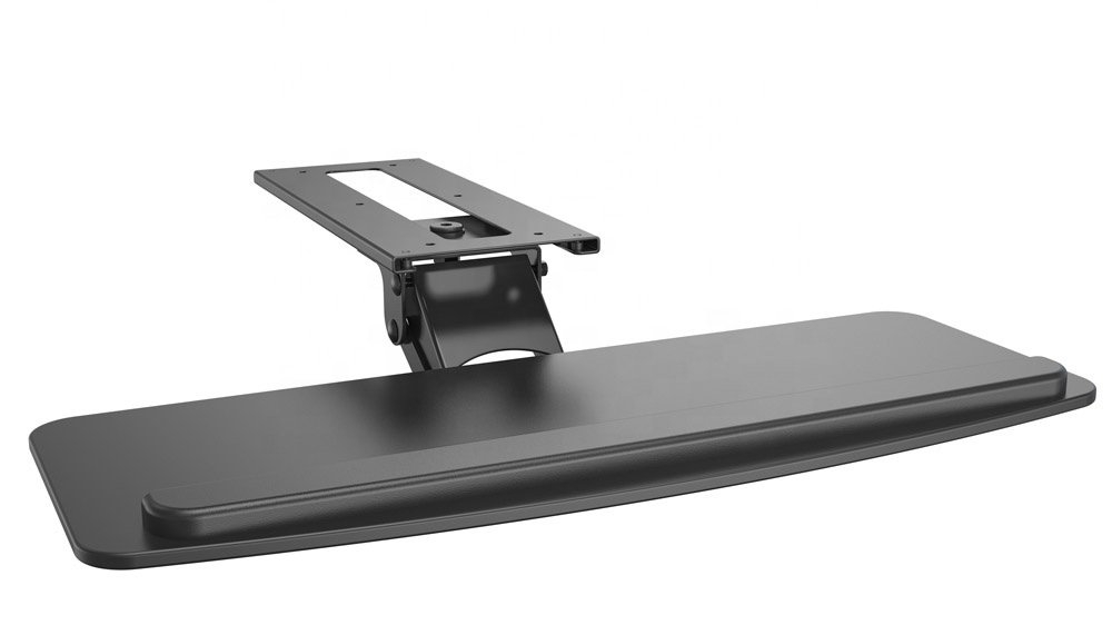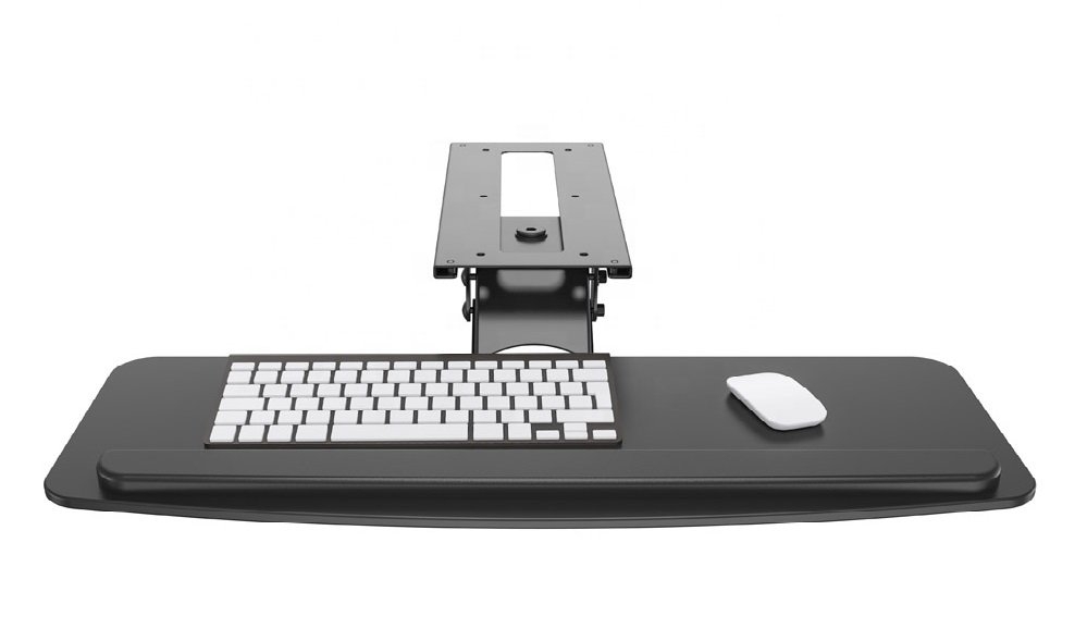 Uchwyt jest przymocowany do biurka. Dzięki takiemu rozwiązaniu uzyskujemy ergonomiczną pozycję pracy. Szerokie możliwości regulacji nachylenia pozwalają dostosować pozycję klawiatury do indywidualnych potrzeb użytkownika. Jakość konstrukcji.