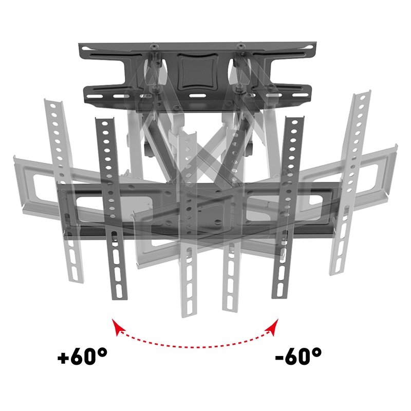 Obrotowy, odchylany, regulowany na długość uchwyt TV do telewizorów o przekątnej od 26 do 55 cali i nośności 35 kg. Potrzebujesz powiesić na ścianie telewizor LED, OLED, QLED lub LCD i chcesz mieć możliwość ustawienia go - obrócenia na bok, pochylenia, odsunięcia i przymocowania do ściany? Ten wspornik jest właśnie dla Ciebie. Uchwyt posiada wysokiej jakości stalową konstrukcję, która zapewni bardzo pewny i niezawodny montaż telewizora. Zintegrowana poziomica ułatwi Ci dokładny montaż, podobnie jak wszystkie materiały instalacyjne zawarte w zestawie.
