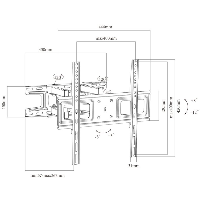 - Regulowana odległość od ściany w zakresie od 57 do 367 mm