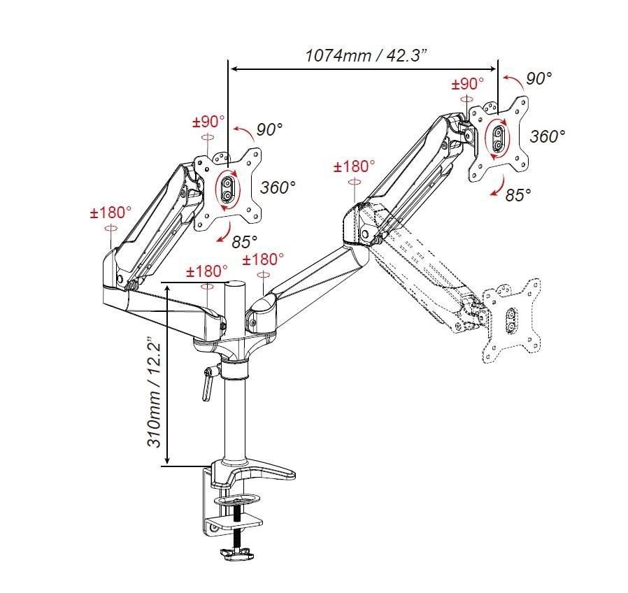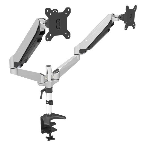 Nowoczesne wzornictwo, bardzo ładnie wykonany uchwyt odpowiedni dla 2 monitorów i obsługujący standard VESA 75x75 i 100x100. Uchwyt jest w pełni regulowany, a jego wielką zaletą jest możliwość regulacji wysokości. Obrót na boki, regulacja odległości od wiązki, duży zakres pochylenia, 2 rodzaje montażu na blacie stołu. Doskonała jakość, łatwa regulacja położenia ekranu i bardzo ładne, nowoczesne wzornictwo to zalety tego uchwytu. Oferujemy profesjonalne rozwiązania w bezkonkurencyjnej cenie na rynku.